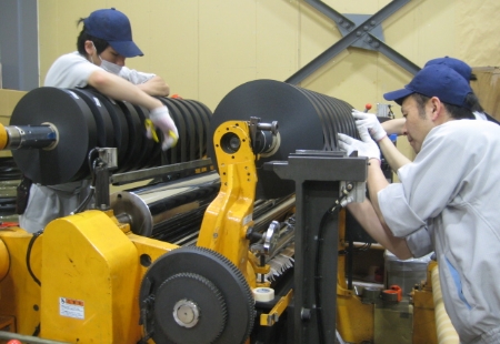 フィルム・紙・金属箔など、指定のサイズに正確にカットし、 再び巻物状に巻き取る加工・スリッター加工。